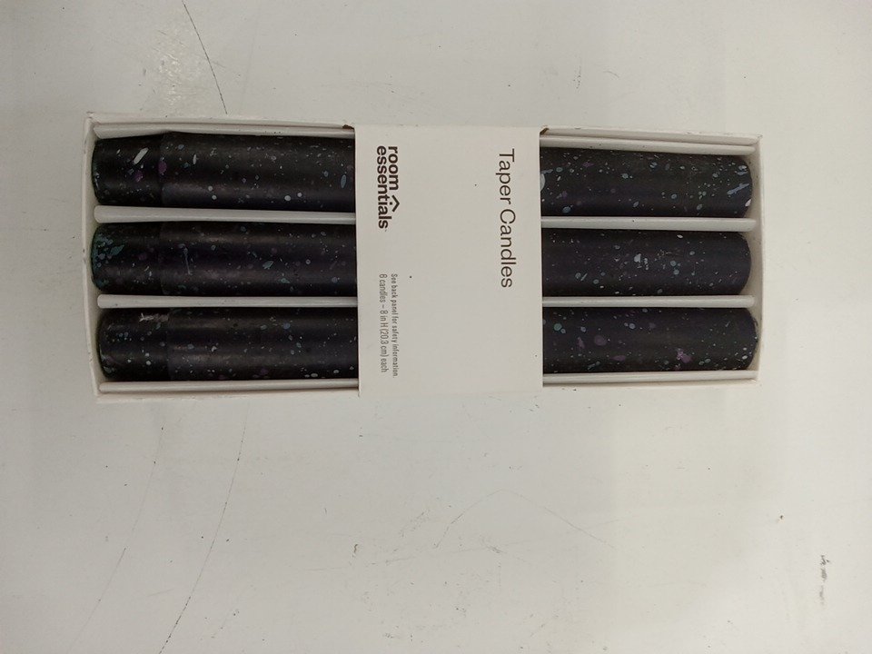 6PK ROOM ESSENTIALS tapered candles sticks - 8" - BLACK/SPOTTED