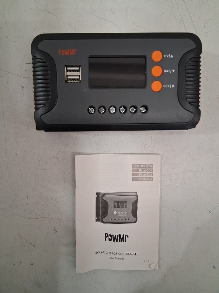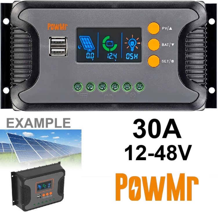PowMr Solar Panel Charger Controller with Dual USB - 30A 12/24/36/48V - Grey/Black (Model: PSTAR-30A)