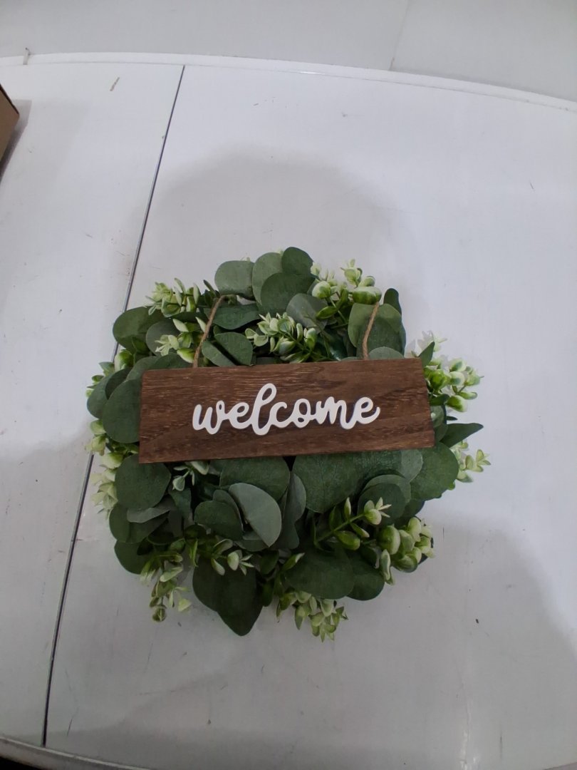 Artificial Wreath with Welcome Sign Artificial Garland - 12"