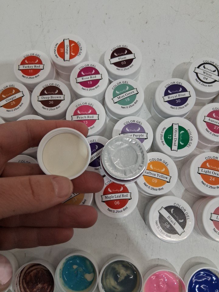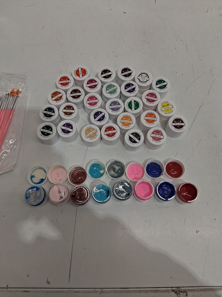 8 of the containers are open and used, with various amounts left. the rest or sealed. tools do show use as well, but should not affect function. please see photos.