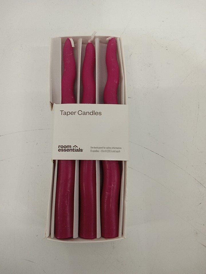 6PK ROOM ESSENTIALS tapered wavy candles sticks - 8" - PINK