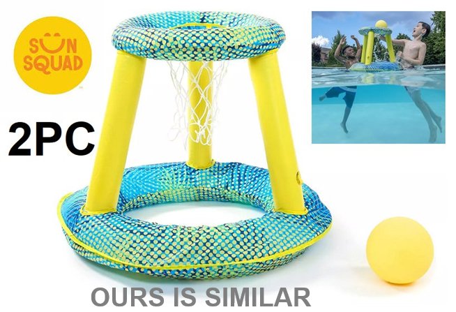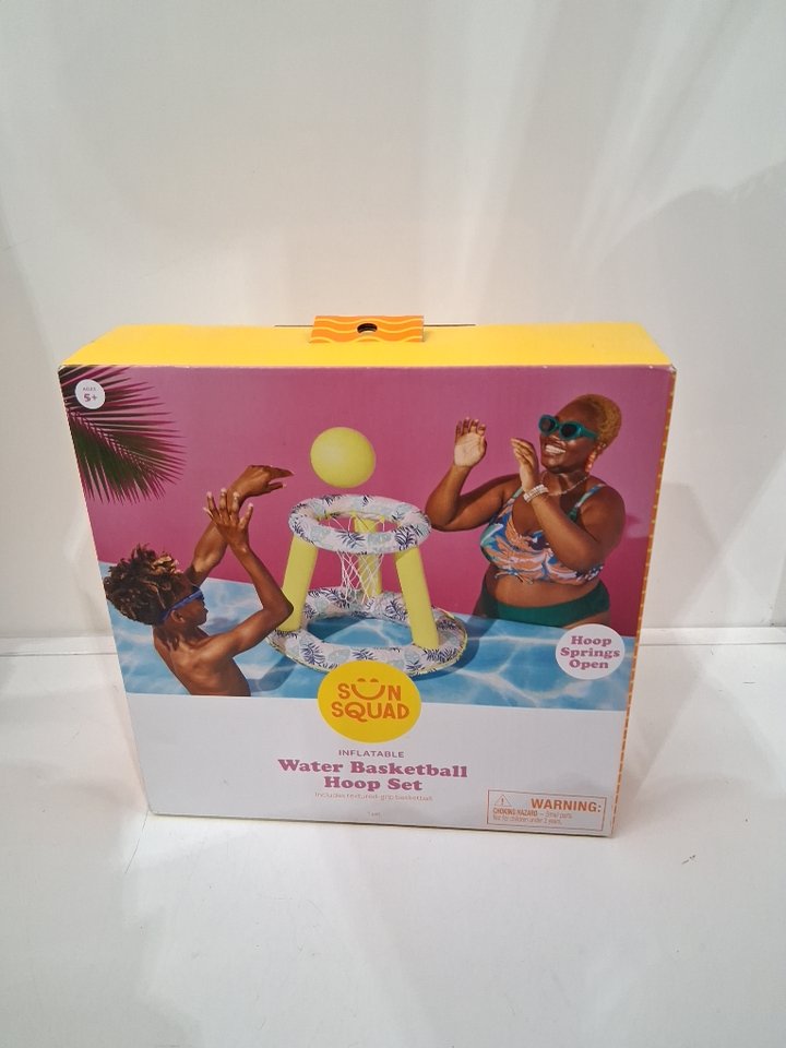 sun squad water basketball hoop set, inflatable wit texture grip basketball -