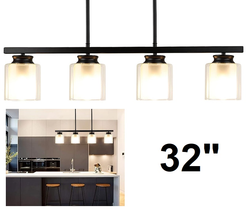 DLLT Flush Mount 4 Light Chandelier with Glass Shades - 32" - Black (Model: ‎WSCDD24-B4)