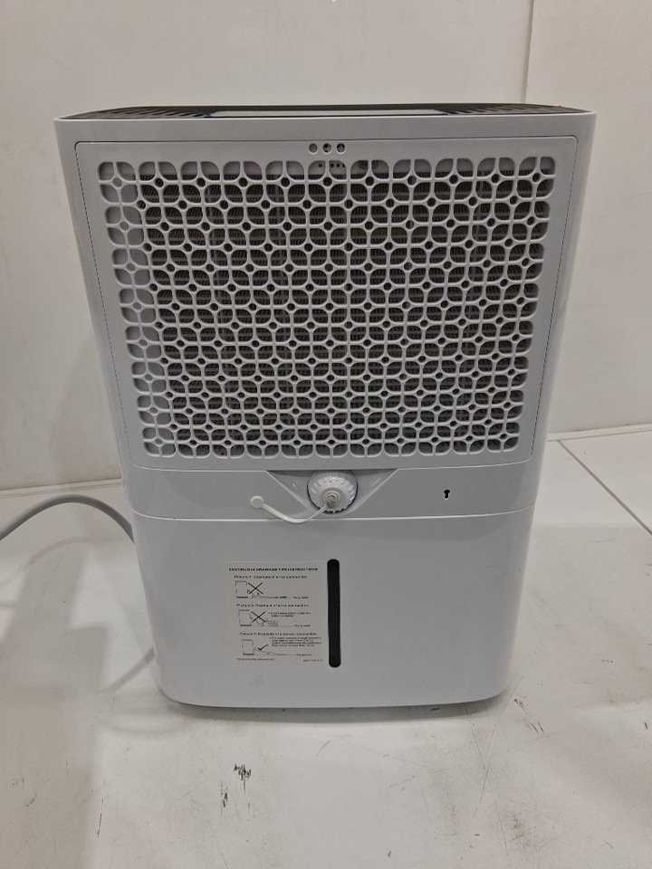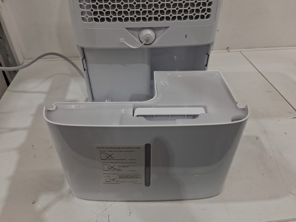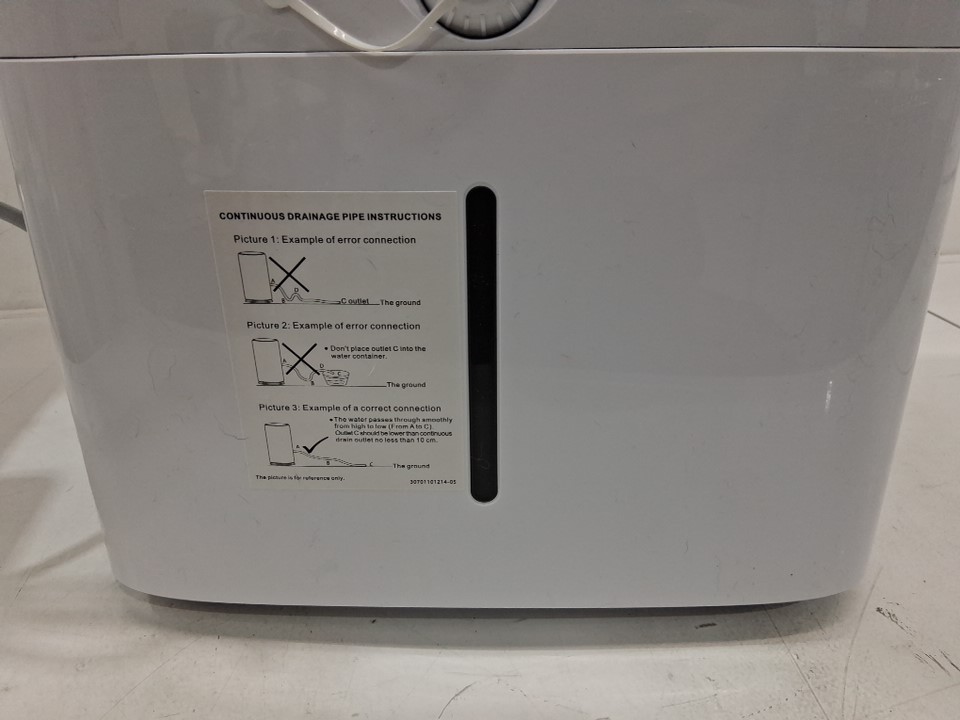 The drain hose is not included in the packaging, so customer will need to supply their own replacement. Otherwise, the humidifier appears unused, though there is some dust/debris on the exterior due to storage and shipping - see photos. Tested for power and basic function.