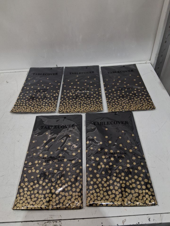 5PK VRBEATTER Disposable Rectangle Table Cover Tablecloths - 54" x 108" - BLACK/GOLD