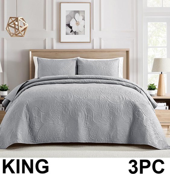 3pc Quilt Collection Bourina ultrasonic quilt bedsheets with two pillow cases - 90'' x 92'' - 20'' x 26'' - grey