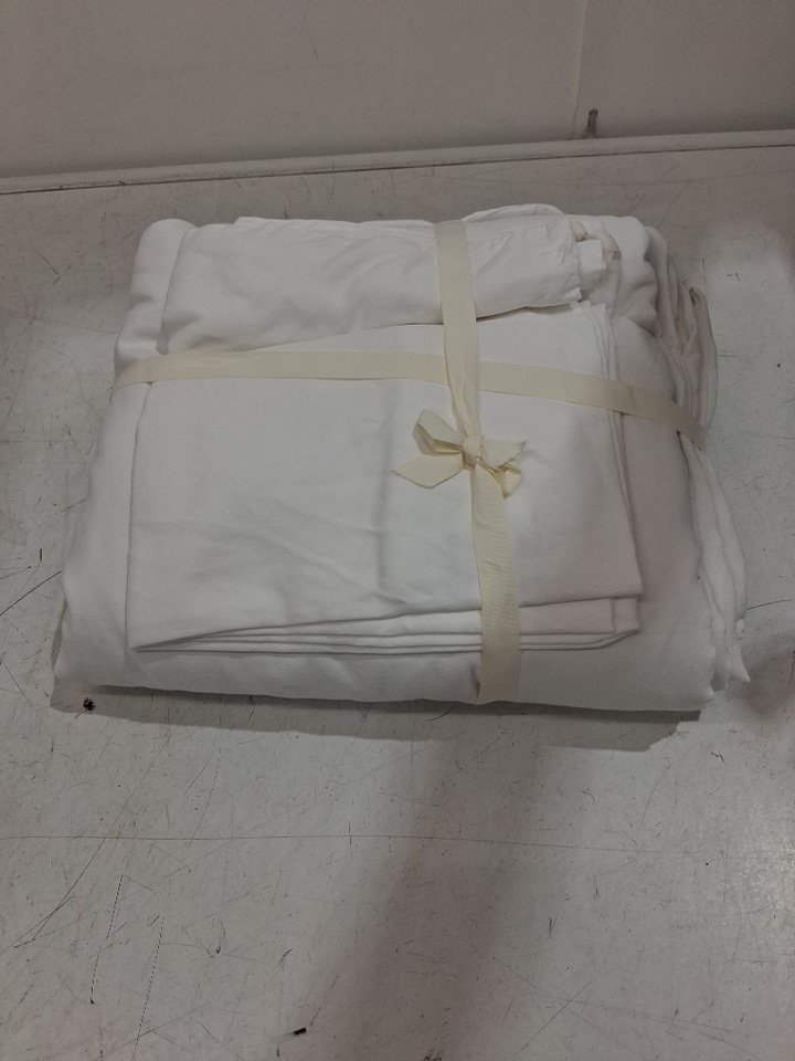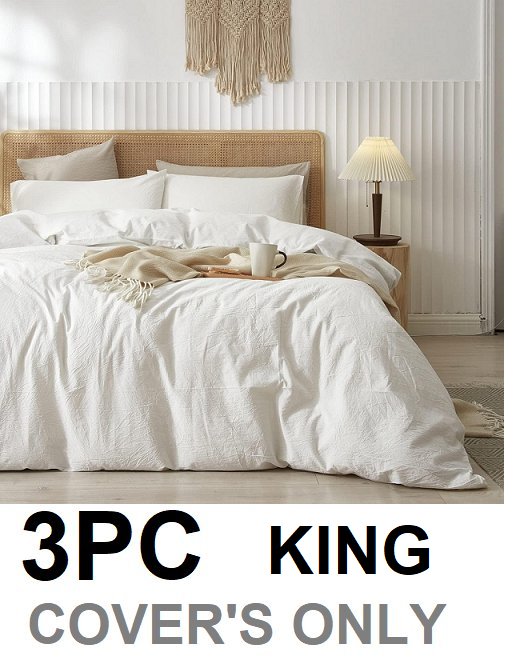 3PC LIFETOWN 100% Washed Cotton Linen Feel Natural Wrinkle Light weight Duvet Cover Set - KING - white
