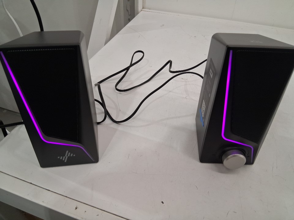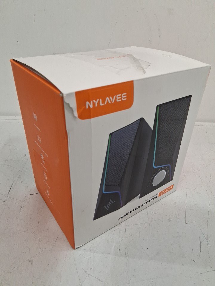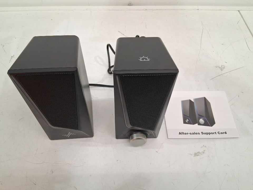 Nylavee Wired Computer Speakers with Colourful LED Lights - 3.5mm Aux - USB Powered - Black (Model: SK400)