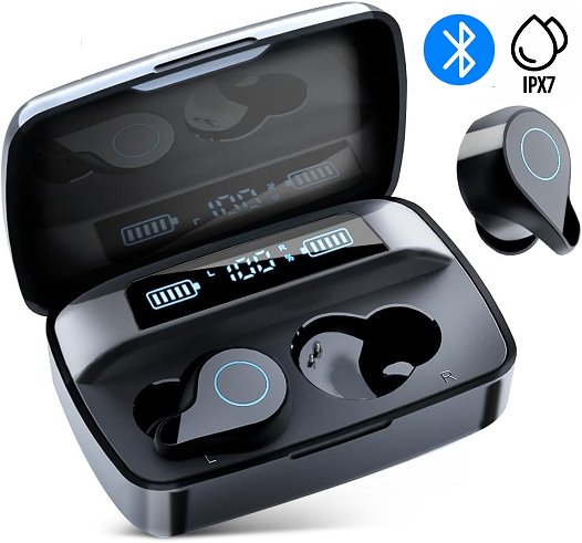 one life wireless bluetooth earbuds with charging case - 88hrs play time - ipx7 - black - (model: m1)