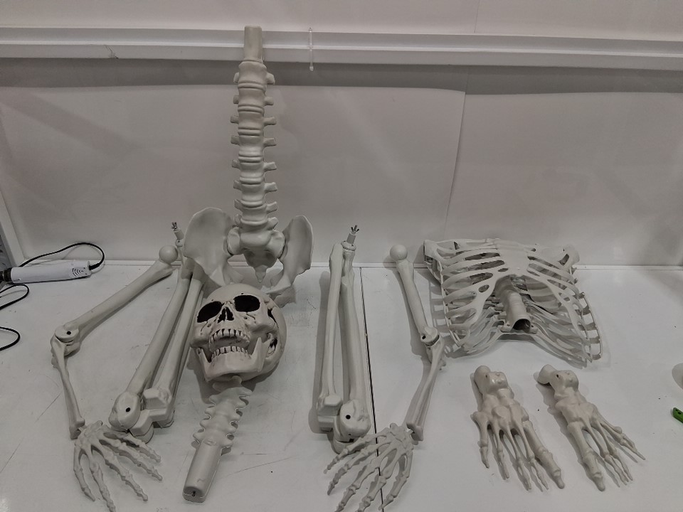 Pose-N-Stay Life Size Skeleton Halloween Decor - 7.5FT - White