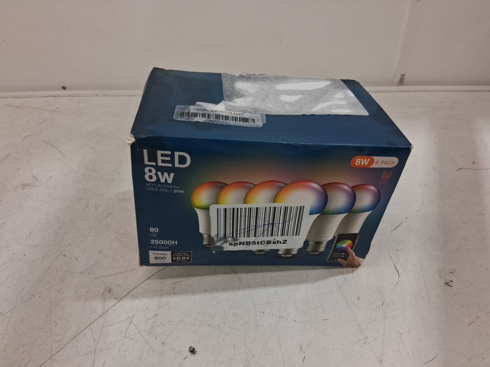 8PK LED 8W google assistant and alexa compatible lightbulbs - a19, 800LM - multicolour