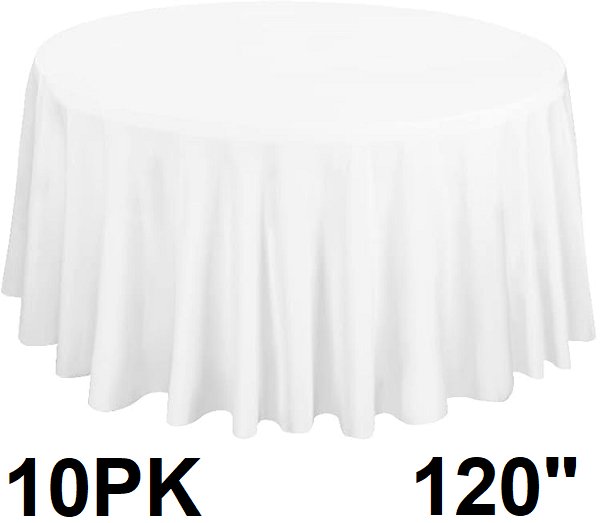 10PK Fani Round White Polyester Wrinkle Resistant Tablecloths - 120" - White