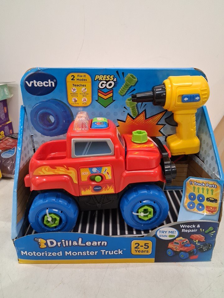 2PC VTech Drill & Learn Motorized Monster Truck with light and sound - Red/Yellow - (Model: 5763)