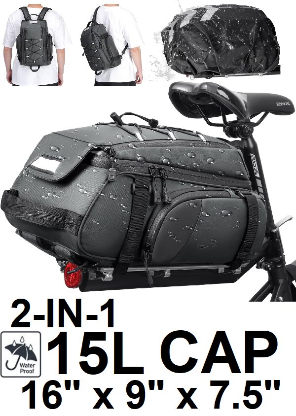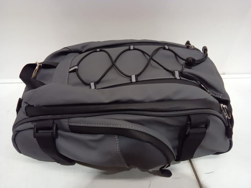 rainsmore 2-in-1 waterproof bike bag/backpack - 15l capacity - 16" x 9" x 7.5" - grey - (model: 5657)