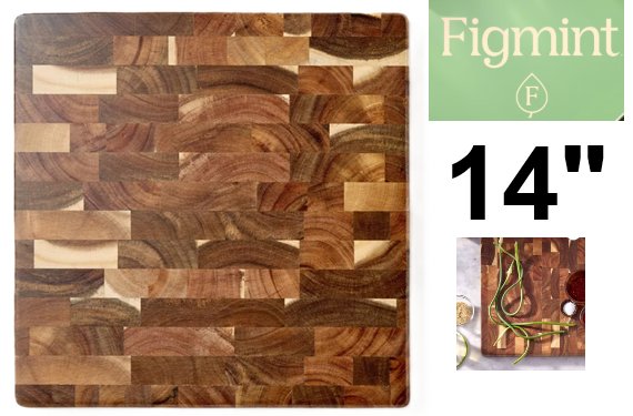 figmint End Grain Acacia Wood Cutting Board - 14"x 14"- natural wood