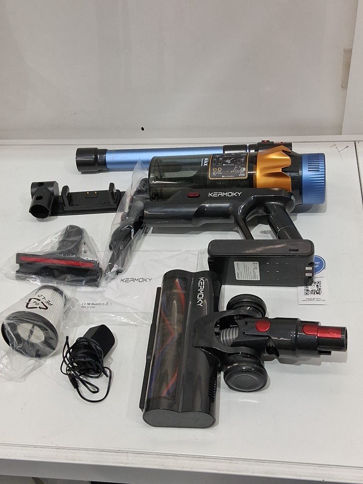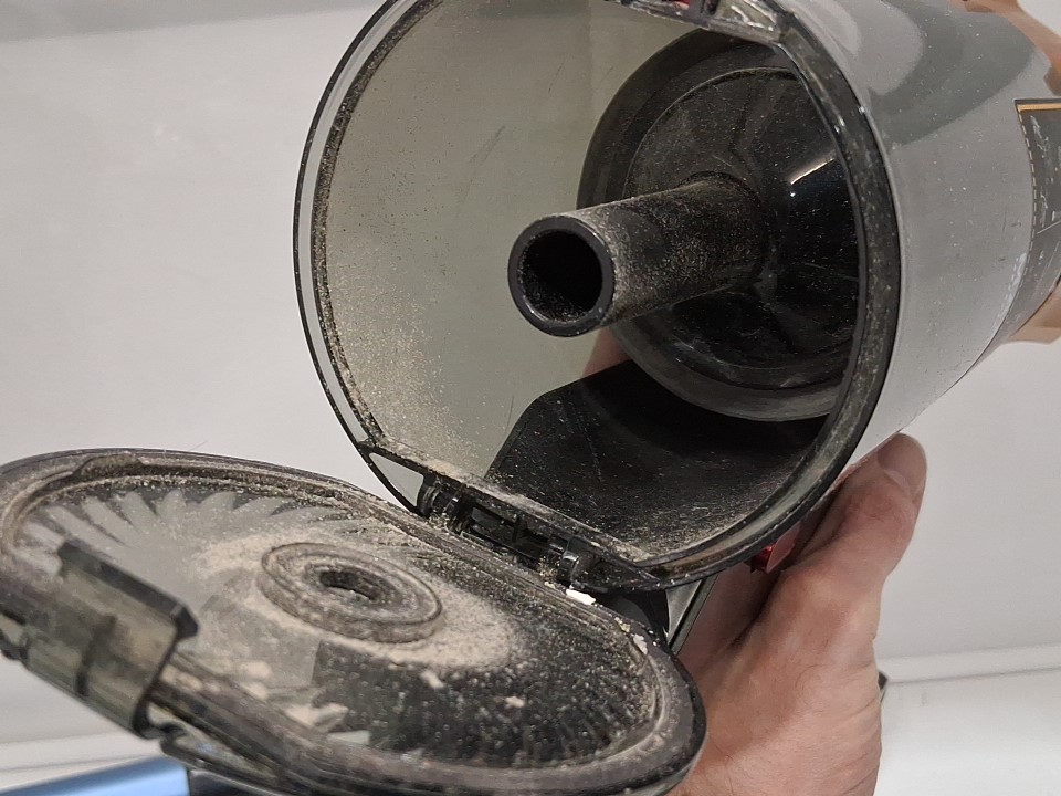 **Tested for power and suction.** Item has minor dust/debris in the main container and roller brush, light cosmetic wear along the exterior from previous gentle use, see photos.