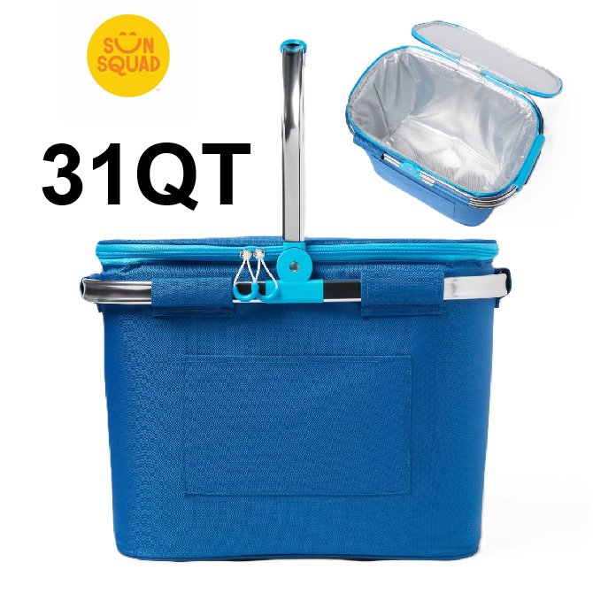 sun squad Soft Sided picnic Cooler basket - 31qt - Blue