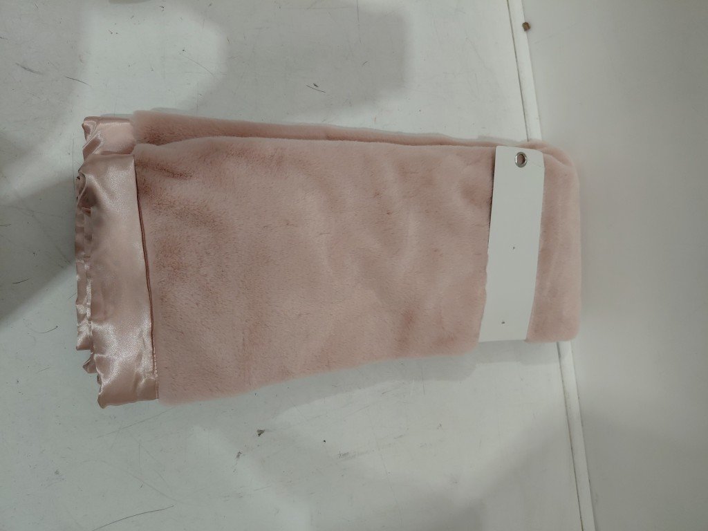 cloud island faux fur satin edge plush baby blanket - 40" x 30" - pink