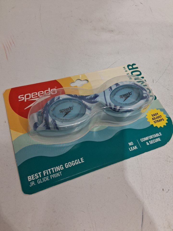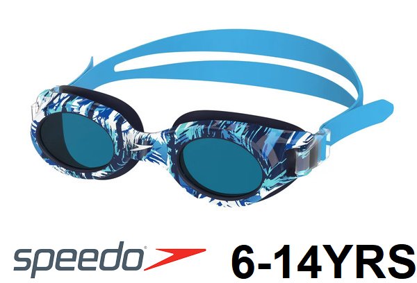 SPEEDO JUNIOR BEST FITTING GOGGLE - AGES 6-14 - BLUE PALM TREES