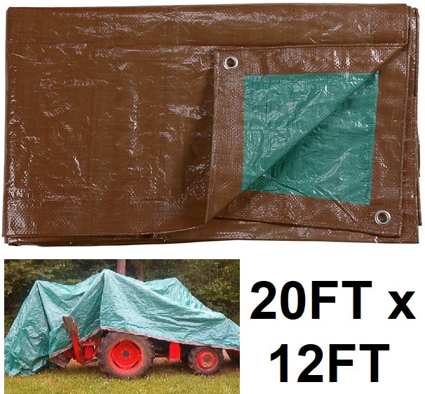 HEAVY-DUTY waterproof POLY TARP with grommets - 20ftx12ft - brown/teal