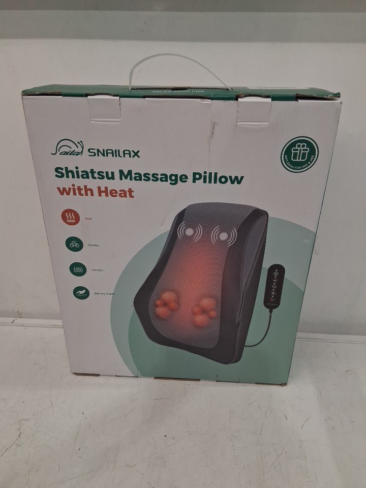 snailax shiatsu massage pillow with heat - Grey/black (MODEL: SL-128)