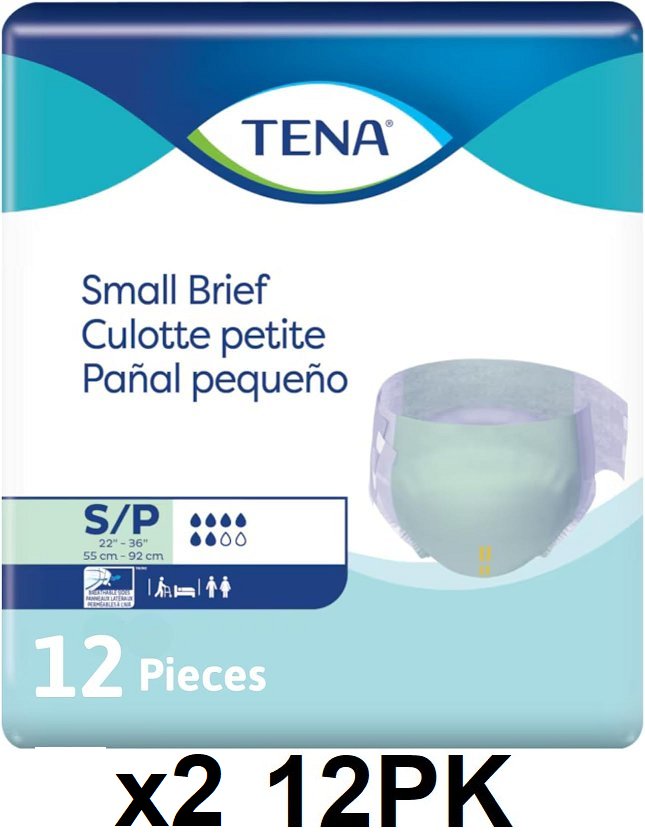 2(12pk) unisex TENA Incontinence Briefs - small - 24 total