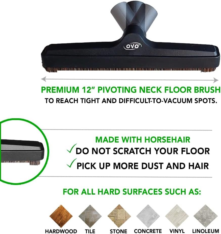 OVO Universal Vacuum Cleaner Floor Brush for Hard Surface with Natural Bristles - 12" - black
