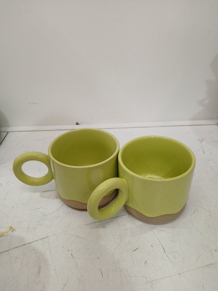 2 Contrast Color Curved Ceramic Mug - 12oz - green