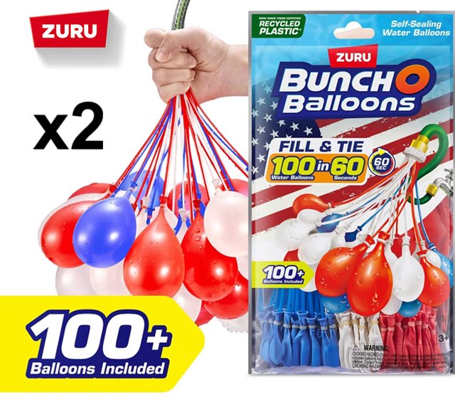 2 (100pk) zuru Bunch O Balloons Rapid-Filling Self-Sealing Pool Water Balloons - red/blue/white