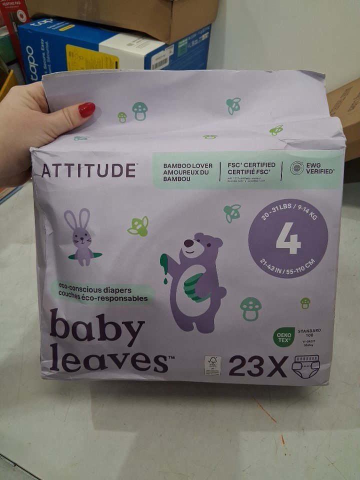 23PK ATTITUDE baby leaves eco-conscious diapers made with bamboo - size 4 (20-31lbs)