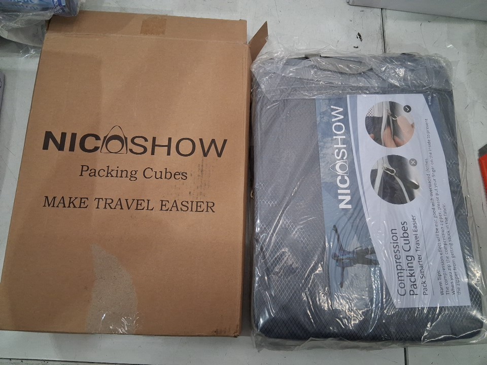 6PC NICOSHOW Compression Packing Cubes Travel Organizers - white/grey