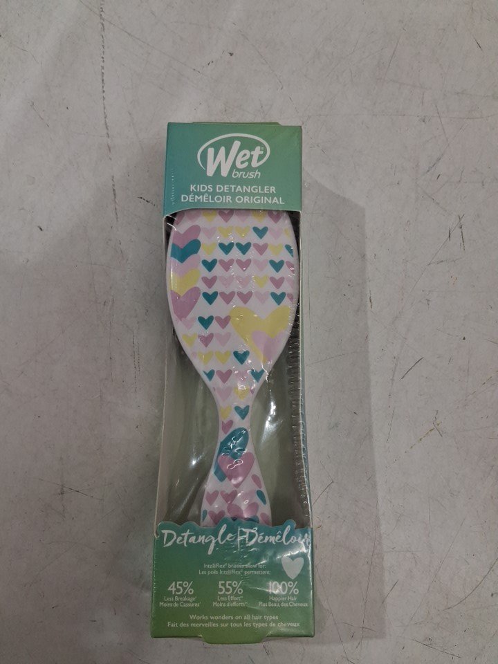kids wet brush detangler hair brush - grey/pink with hearts (model: SPB837KID4CA)