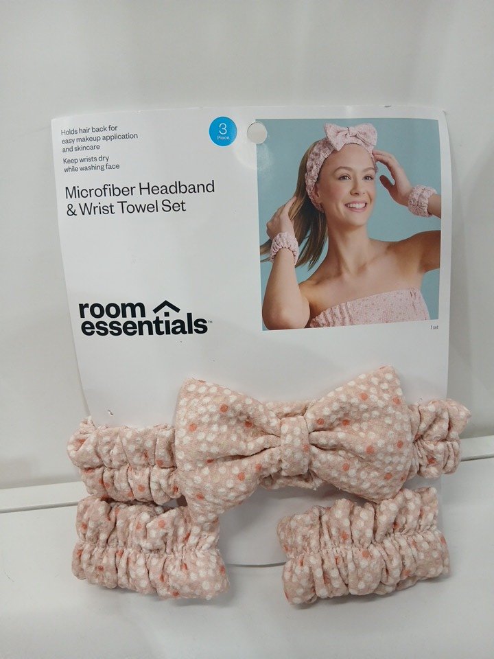 3PC ROOM ESSETIALS room essentials microfiber headband wrist towel SET - PINK