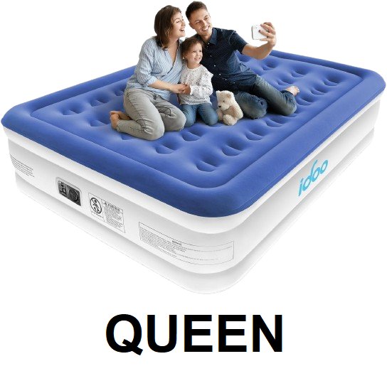 iDOO Luxury Queen Air Mattress with Built in Pump - 18" TALL, QUEEN - BLUE/WHITE (MODEL: ‎R-M002)