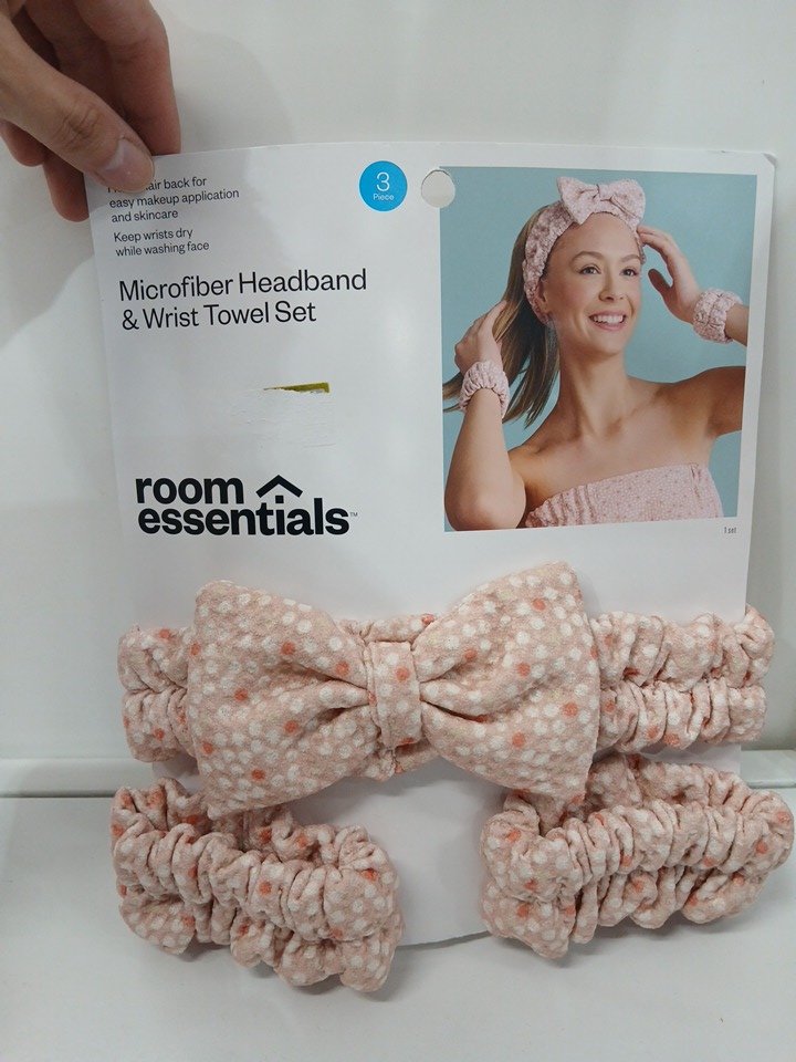 3PC ROOM ESSETIALS microfiber headband wrist towel SET - PINK