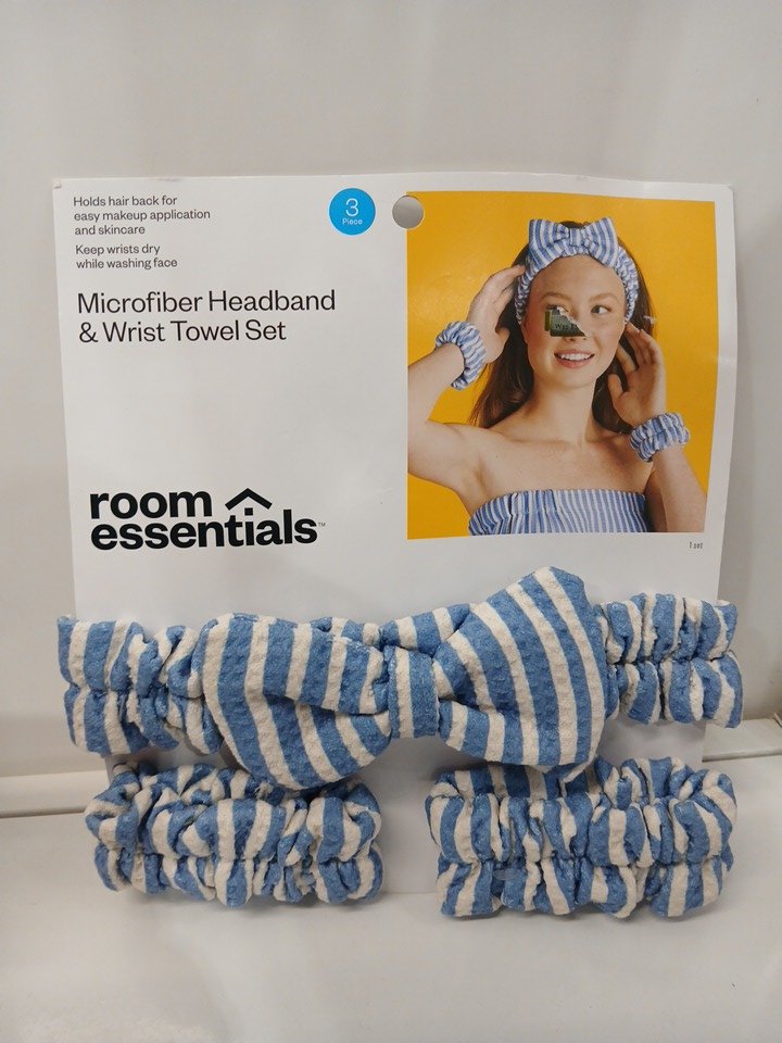 3PC ROOM ESSETIALS microfiber headband wrist towel SET - BLUE