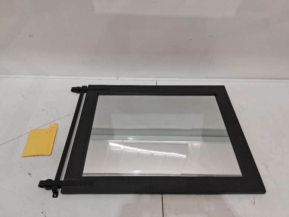 Costway Barn Door Style Wall Mount Vanity Mirror, with Wood Frame - 30" x 22" - Black (model: hz10057DK)
