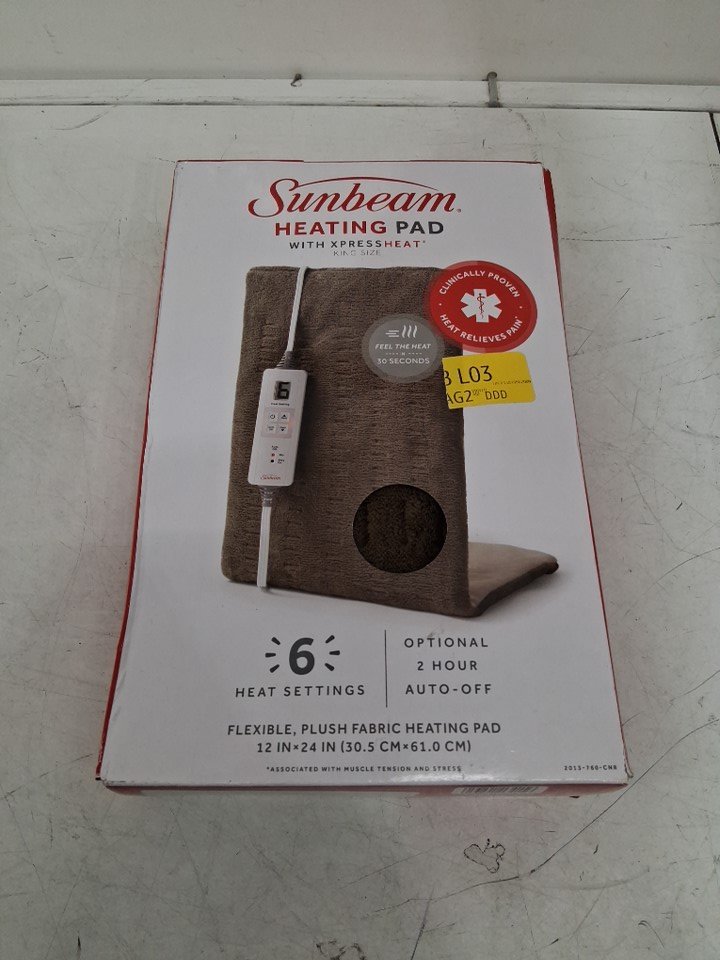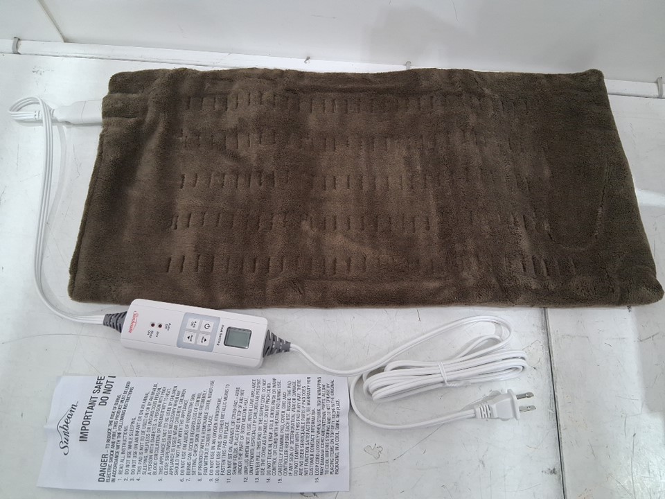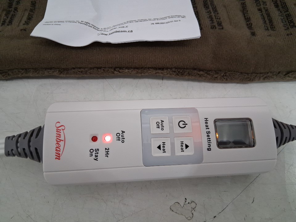 SUNBEAM XPRESSHEAT 6-SETTING PLUSH HEATING PAD - KING SIZE (12" X 24") - BROWN (MODEL: 2013-760-CNR)