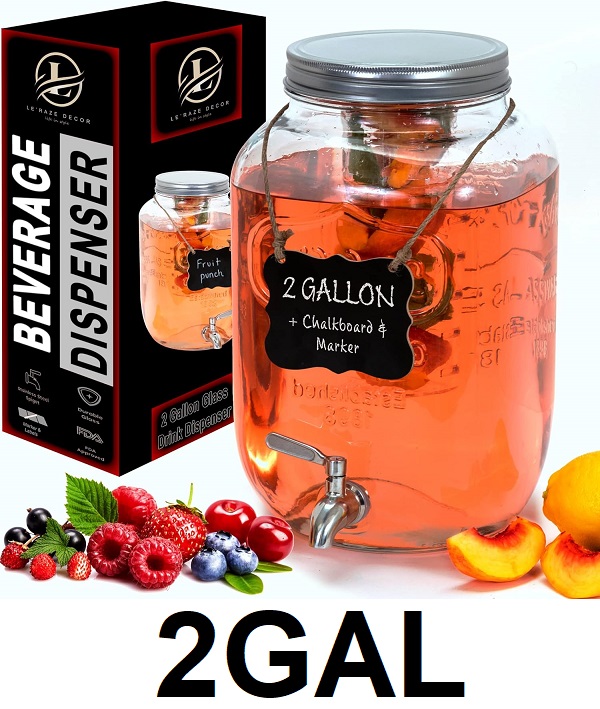 Le'Raze Glass Liquor Decanter Drink Dispenser - 2GAL (model: GL958)