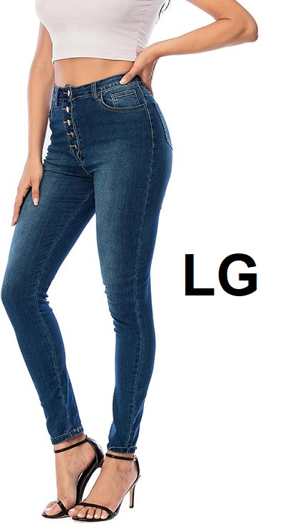 WOMEN'S AECUPPER HIGH WAISTED STRETCH SKINNY JEANS with button fly - LARGE - blue