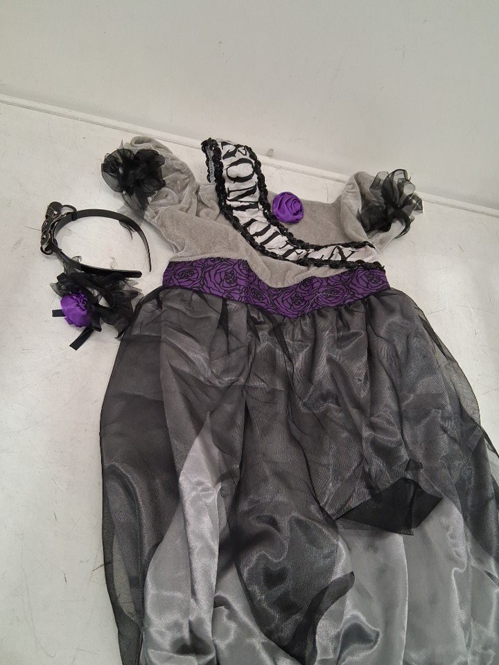 Girl's MorphCostumes Spooky Prom Queen Costume - Size Medium - Grey/Black/Purple