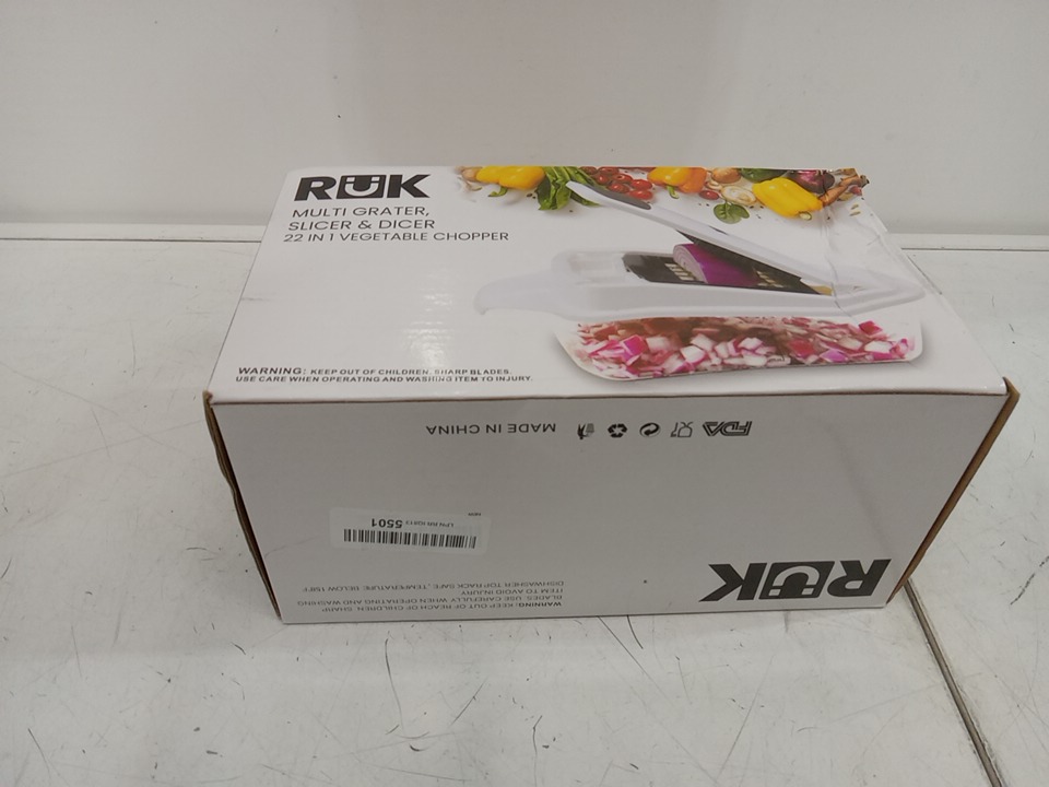 RUK 10-in-1 Vegetable Chopper - Multi Grater, Slicer & Dicer - white/black
