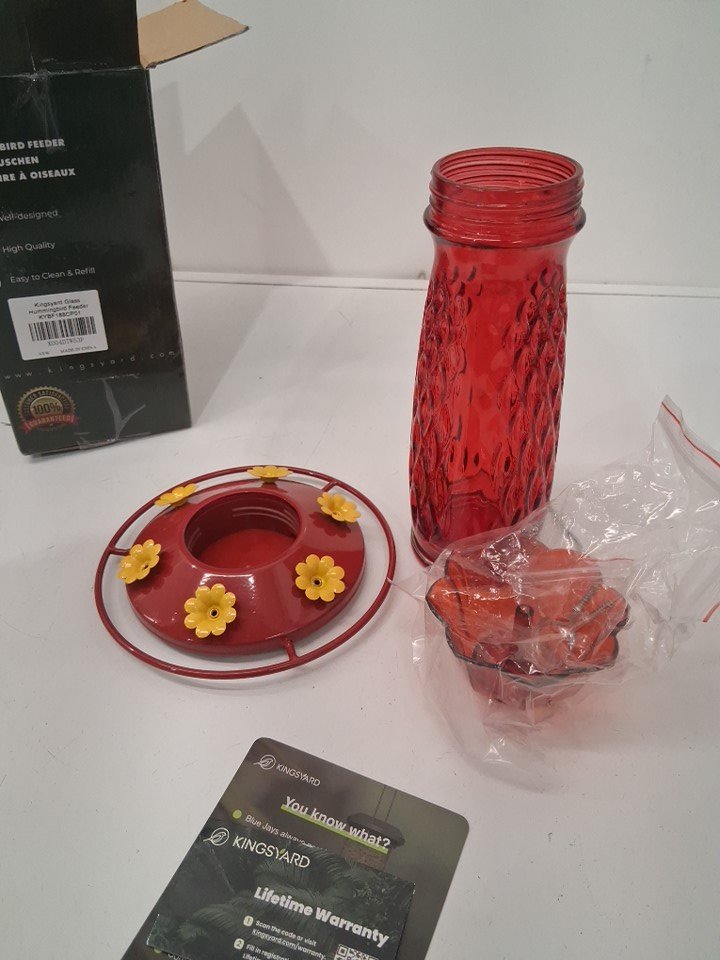 kingsyard outdoor glass hummingbird feeder with 6 ports - 24oz - red