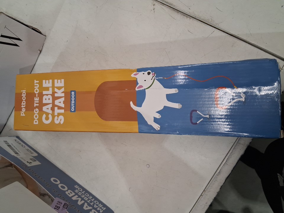 petbobi dog tie-out cable with durable spring and stake - 30ft - for up to 35lbs dogs - black/orange