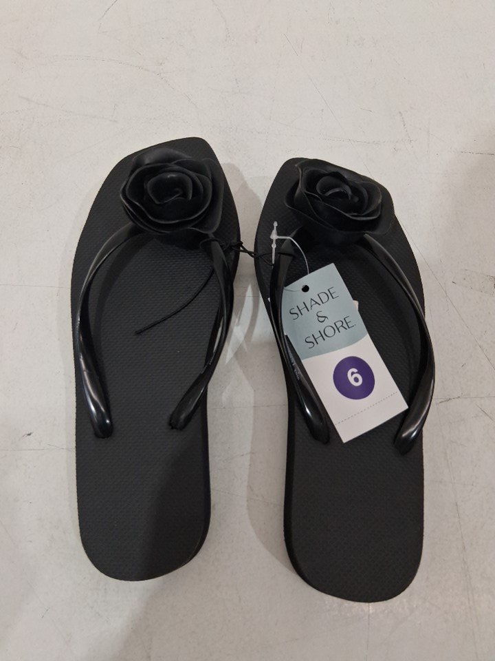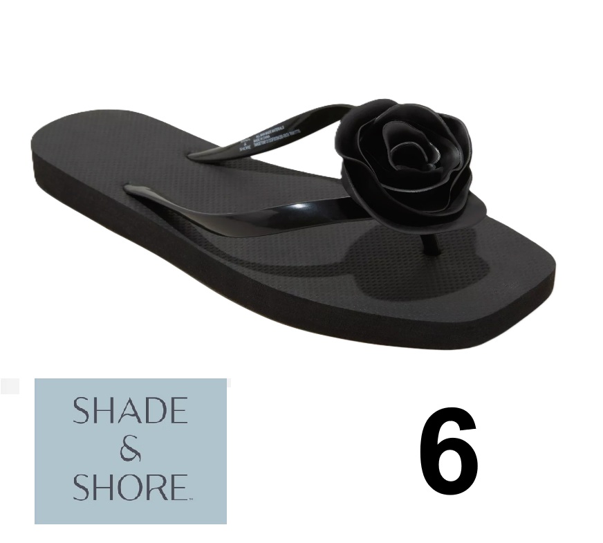 Women's Shade & Shore Black Rosie Rosette Thong Flip Flop Sandals - Size 6 - Black