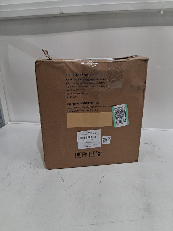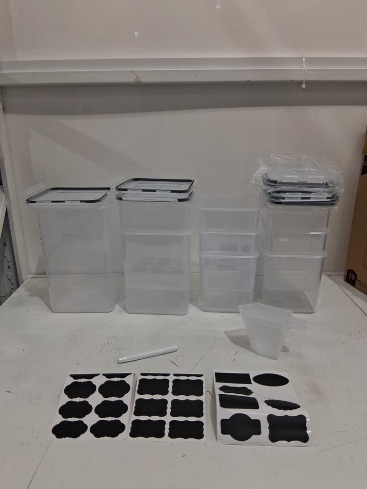 one of the large containers with lid and 2 measuring cups as well as some of the adhesive stickers are missing from pack, suggesting someone else has opened this.