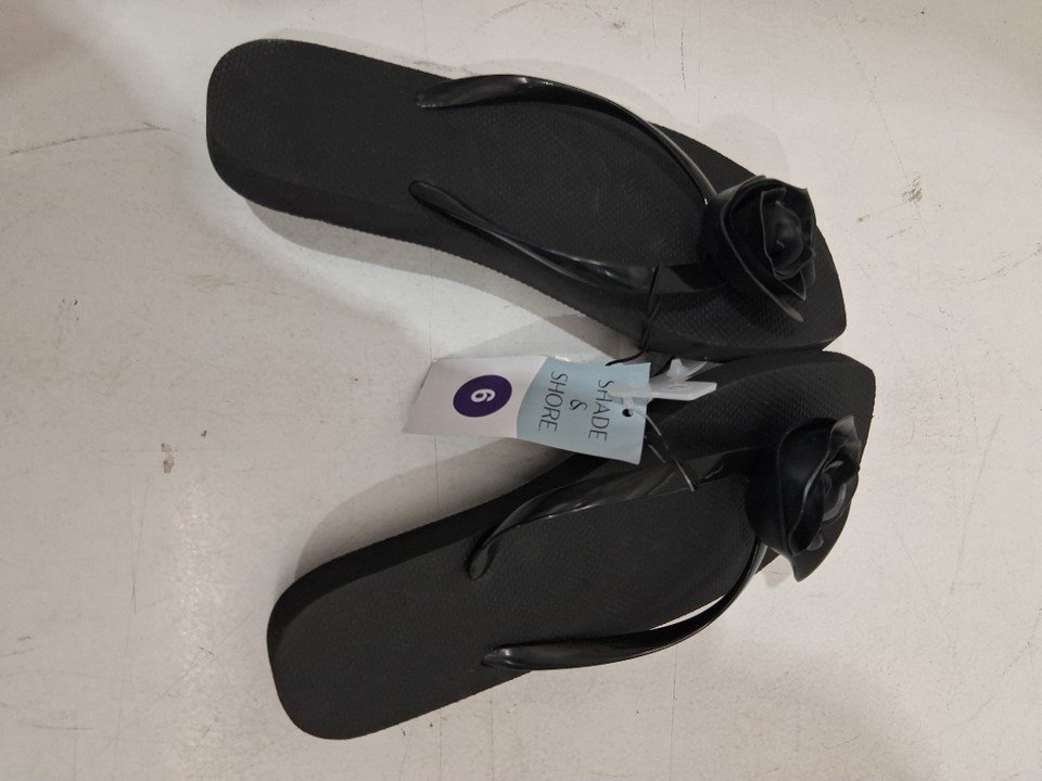 Women's Shade & Shore Black Rosie Rosette Thong Flip Flop Sandals - Size 6 - Black