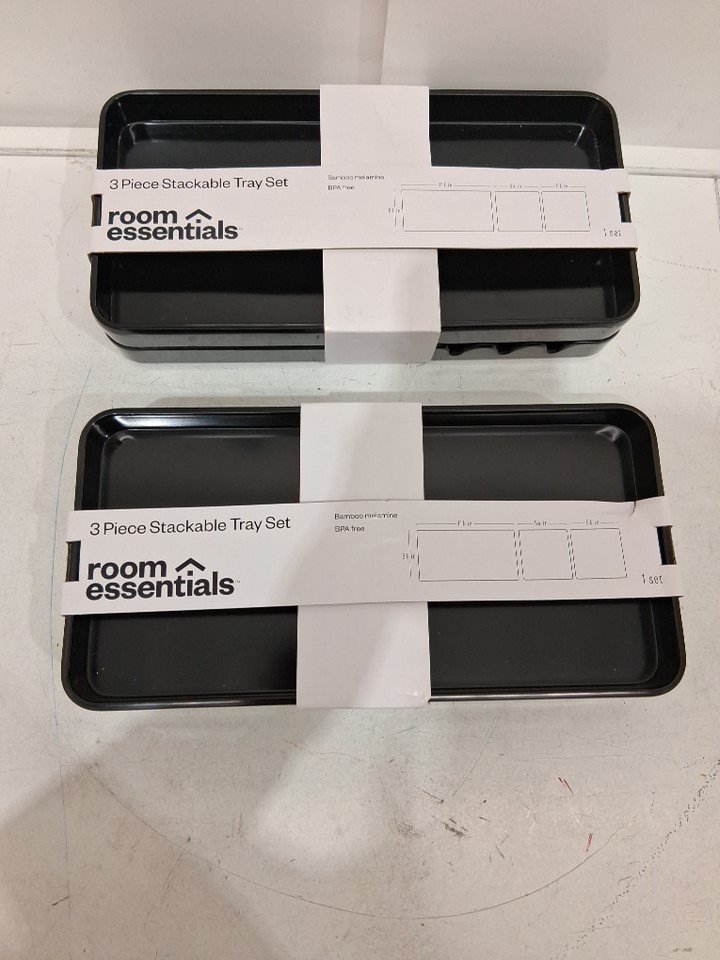 2 (3PC) Room Essentials Stackable Melamine Decorative Trays - BLACK
