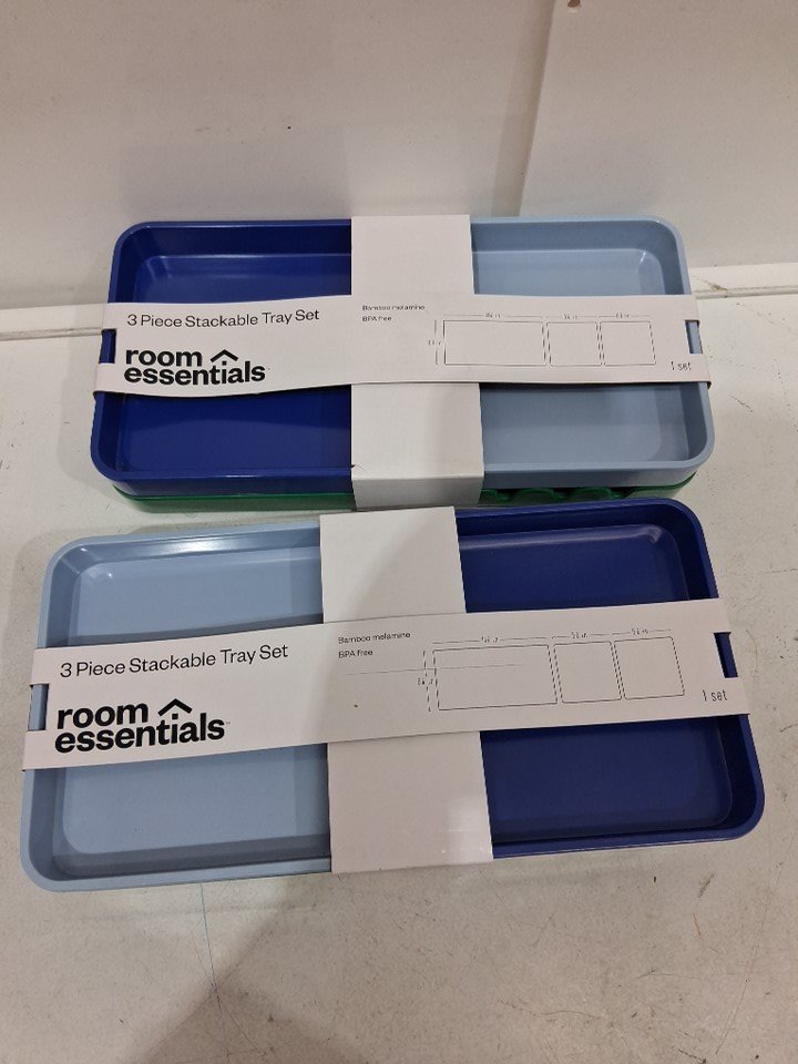 2 (3PC) Room Essentials Stackable Melamine Decorative Trays - BLUE / GREEN