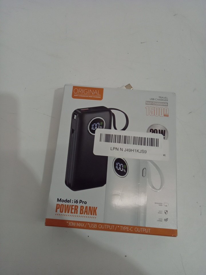 Portable FAST CHARGING Power Bank with type c and lightning bolt cable - 15000mah - white (MODEL: i6pro)